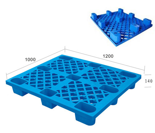 尺 寸:1200*1000*140mm; 材 质:新料(以蓝色为主,可定做其它颜色;黑色环保材料); 使用形: 四面进叉,适合平地、货物周转使用; 适应温度:-25℃~+40℃(尽量避免阳光曝晒及靠近热源); 优 点 :塑料托盘采用新料卡板质轻坚固、稳定性好,装载性能强;美观,无钉刺、无味无毒、易清洗消毒、耐腐蚀、不霉烂、不助燃等优点;适合频繁周转作业,使用寿命通常是木质卡板的5~7倍;可回收再利用,符合环保要求,包装货物出口可免植物检疫证书、免熏蒸消毒证书,省时方便,是出口企业解决欧美国家禁止木质包装的首选。